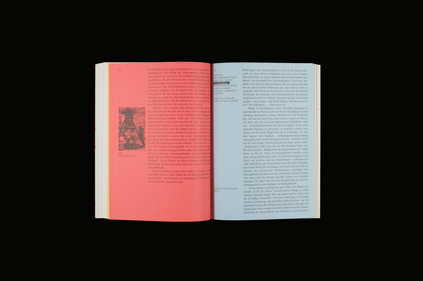 Wer ist dein Rudel? Ich bin eine Wohnprojekt-Veteraninnen, aus den 90ern, als alles möglich war und „wir noch träumten“ (Clemens Meyer). In der Dresdener Neustadt gab es soviele IGs – Interessengruppen wie Wohnprojekte, ich bin in einem ab der Grundschule aufgewachsen, der Amselhof, den meine Mutter Friederike Beier (1944–2017) gründete – der Friederike-Beier-Weg zwischen Nordbad und Böhmischer Straße wurde nach ihr benannt. Wir Kinder der Neustadt waren Nerds und Streuner und Spezialisten, einen habe ich bei der Werkschau – Made in Sachsen wiedergefunden: mein Schulfreund Amac Garbe, Autor, Fotograf und Herausgeber von „Stadtluft Dresden“, seine und meine Publikationen (Yvette Kießling, Atelier Leipzig) lagen zusammen in Chemnitz auf einem Tisch: ein Zufall? Wohl eher nicht, es musste fast so kommen, dass sich unsere Wege wieder kreuzten: Wir beide waren Redakteure unsere Schülerzeitung. Made in Sachsen – Made in Saxony, Wir sind Kinder der Bunten Republik Neustadt.
